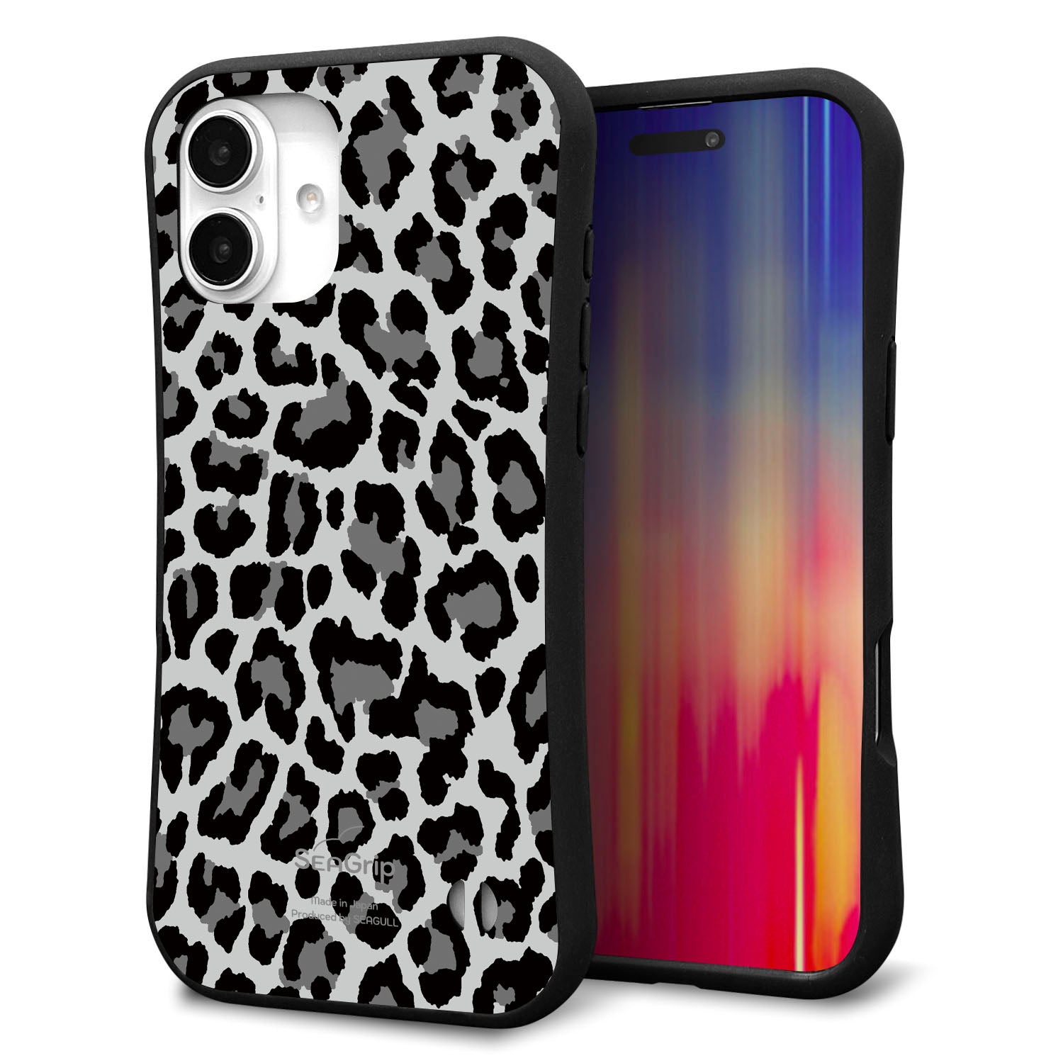 iPhone16 Plus スマホケース 「SEA Grip」 グリップケース Sライン 【MA817 レオパード × グレー 】 UV印刷