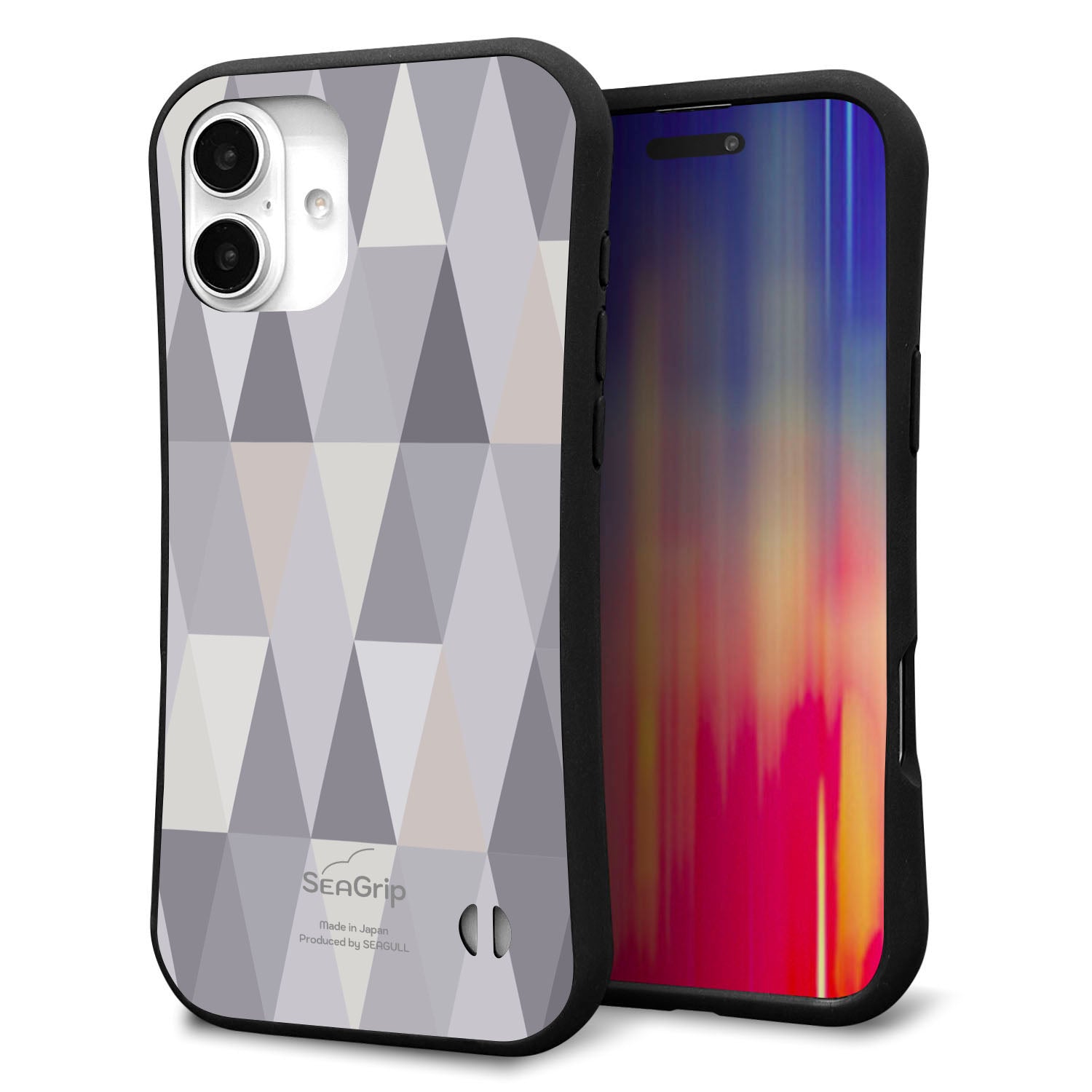 iPhone16 Plus スマホケース 「SEA Grip」 グリップケース Sライン 【MG801 くすみブルー】 UV印刷