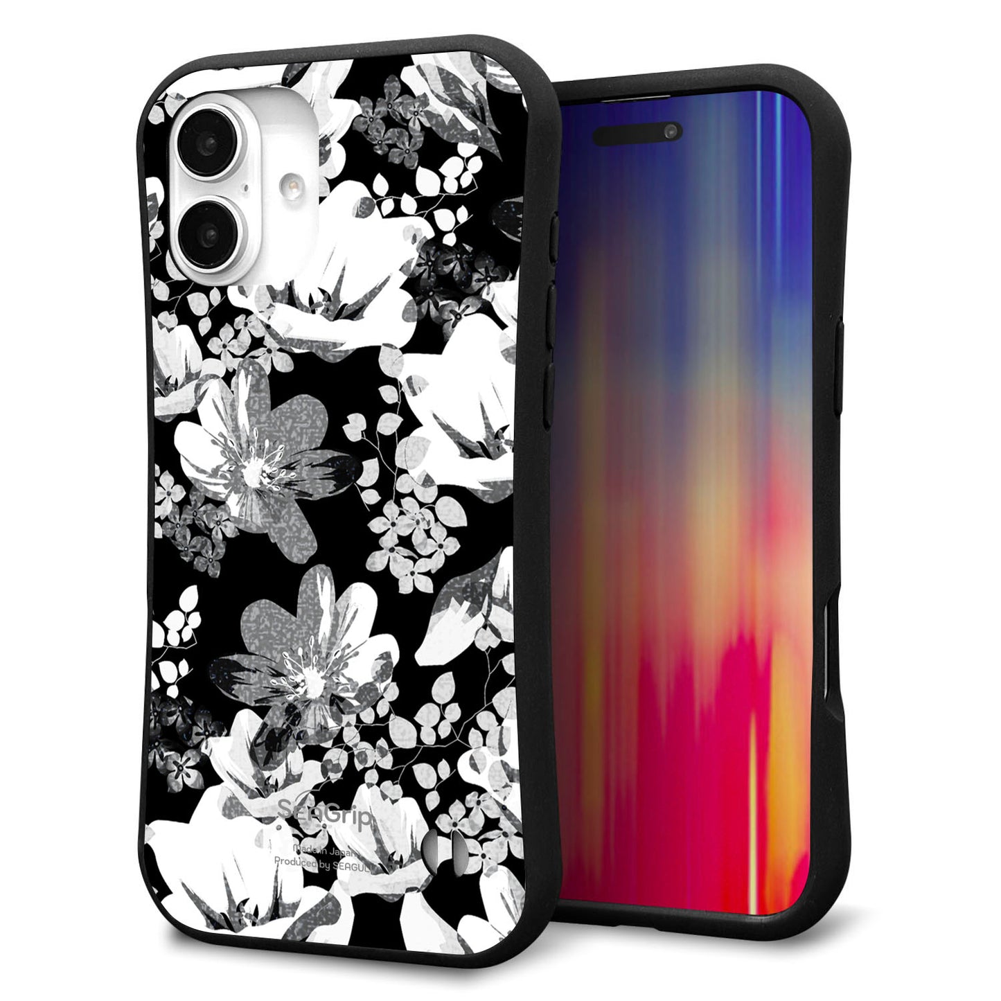 iPhone16 Plus スマホケース 「SEA Grip」 グリップケース Sライン 【SC913 花柄モノトーン 02】 UV印刷