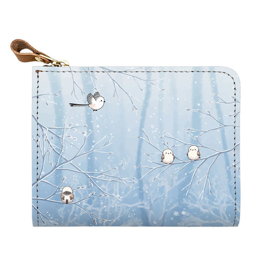 シマエナガとかわいい時間 マチあり L字ファスナー 小さいミニ財布 姫路レザー ミニウォレット