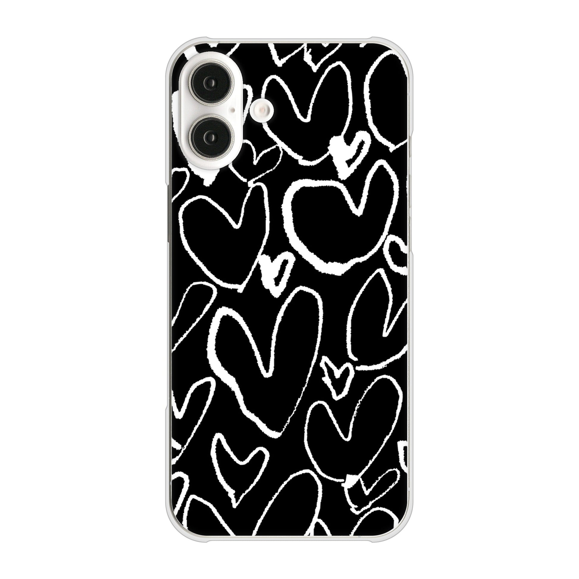 iPhone16 Plus 高画質仕上げ 背面印刷 ハードケース 【1124 ハート BK&WH】