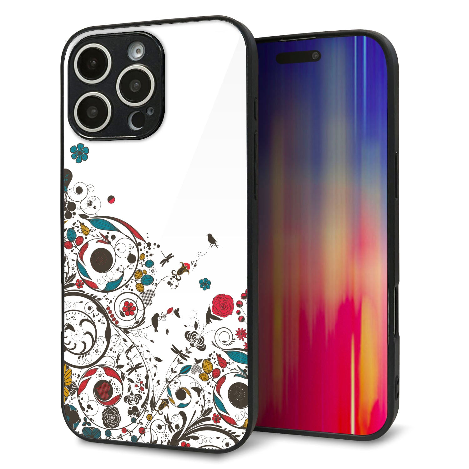 iPhone16 Pro Max 強化ガラス&TPUスマホケース ガラプリ【EK908 カラフルな花と鳥】