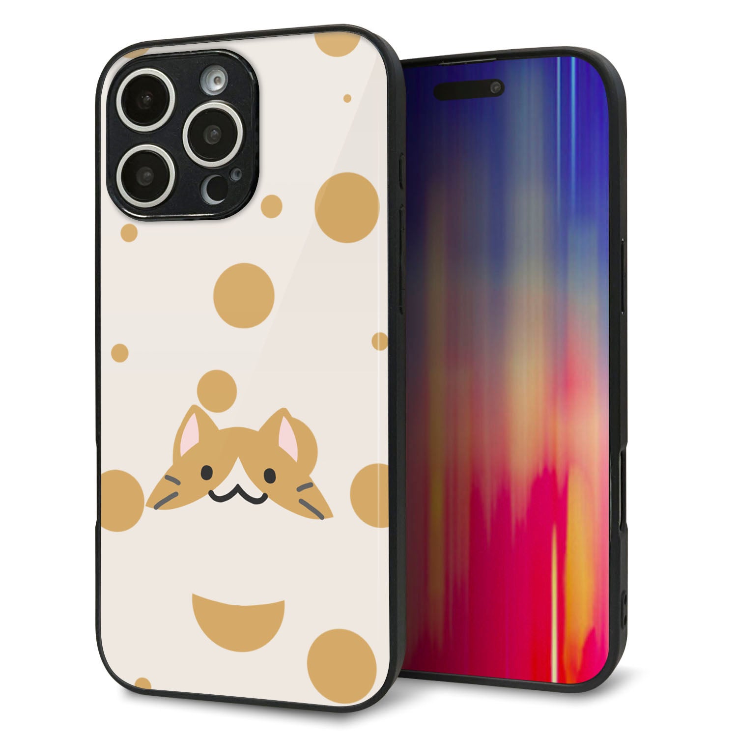 iPhone16 Pro Max 強化ガラス&TPUスマホケース ガラプリ【HA244 もちねこ ハチワレ】