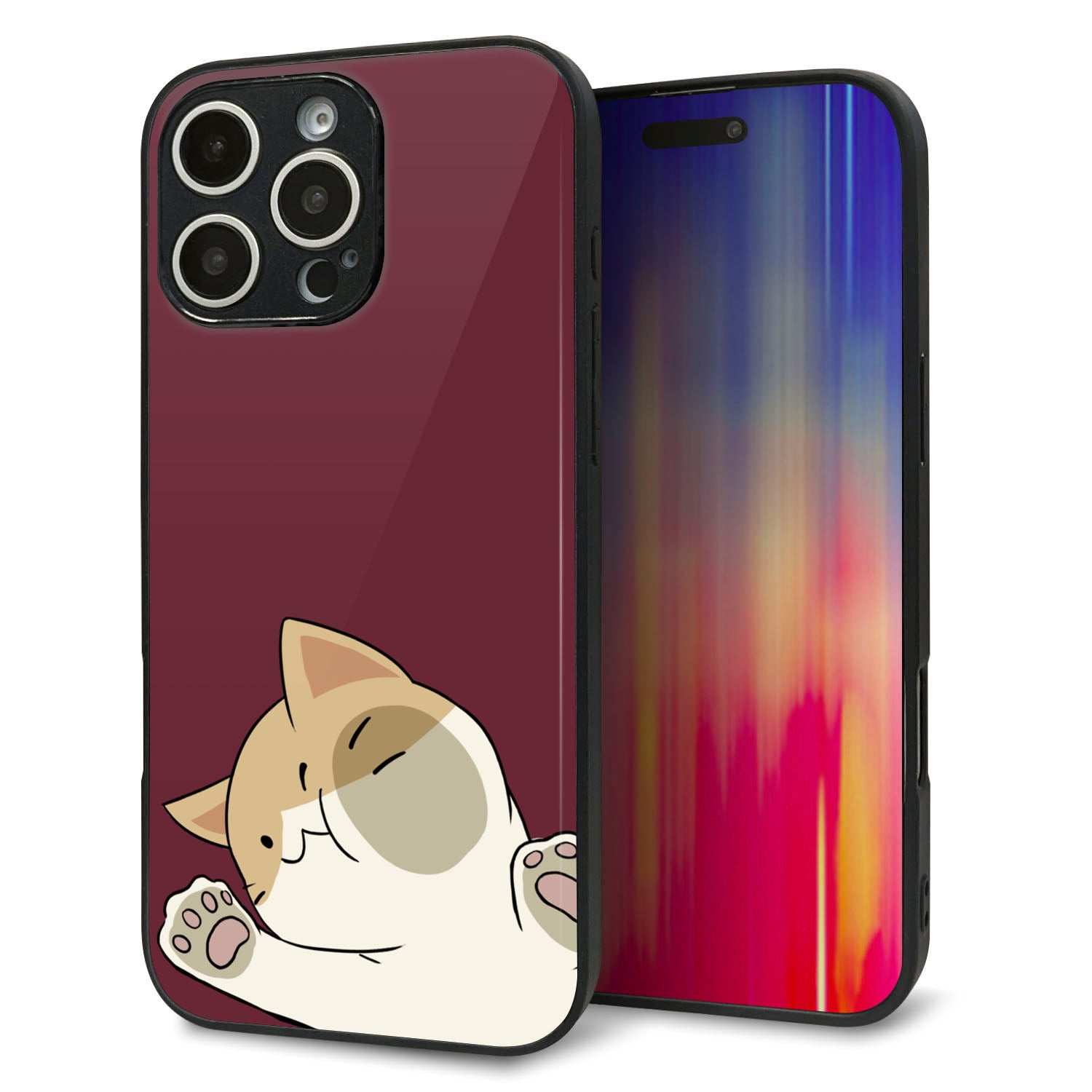 iPhone16 Pro Max 強化ガラス&TPUスマホケース ガラプリ【HA291 むぎゅっとハチワレ】