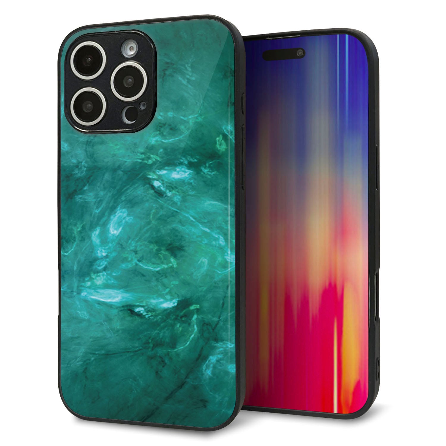 iPhone16 Pro Max 強化ガラス&TPUスマホケース ガラプリ【KM869 大理石GR】
