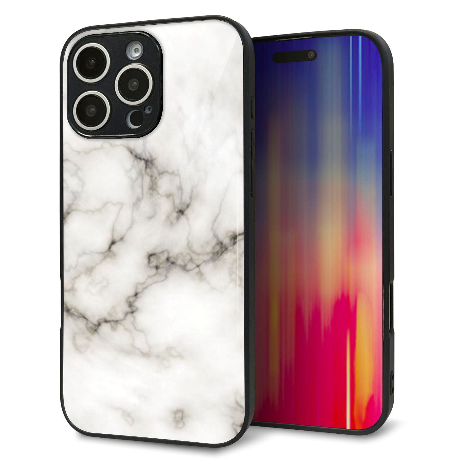 iPhone16 Pro Max 強化ガラス&TPUスマホケース ガラプリ【KM871 大理石WH】