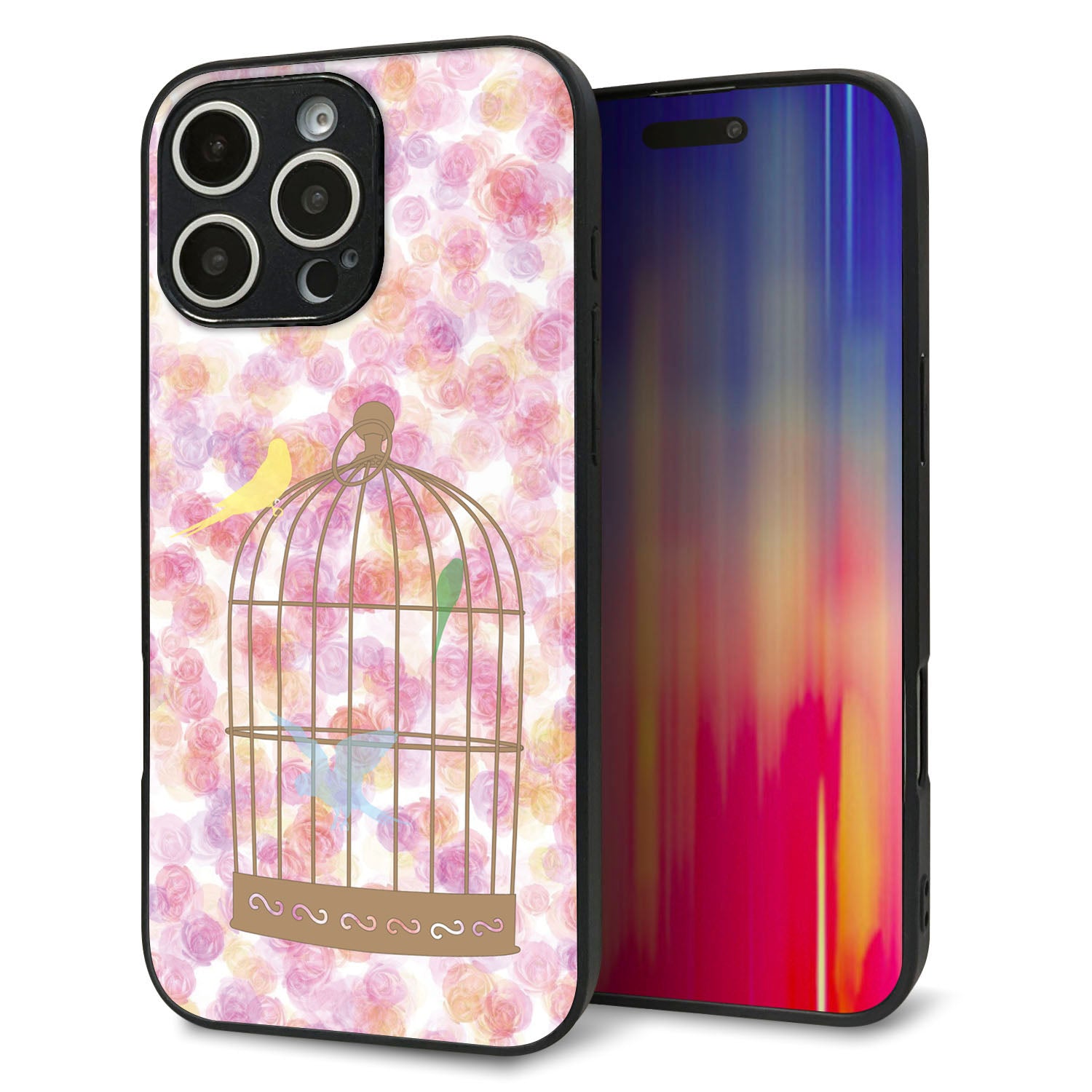 iPhone16 Pro Max 強化ガラス&TPUスマホケース ガラプリ【KM882 鳥かご】