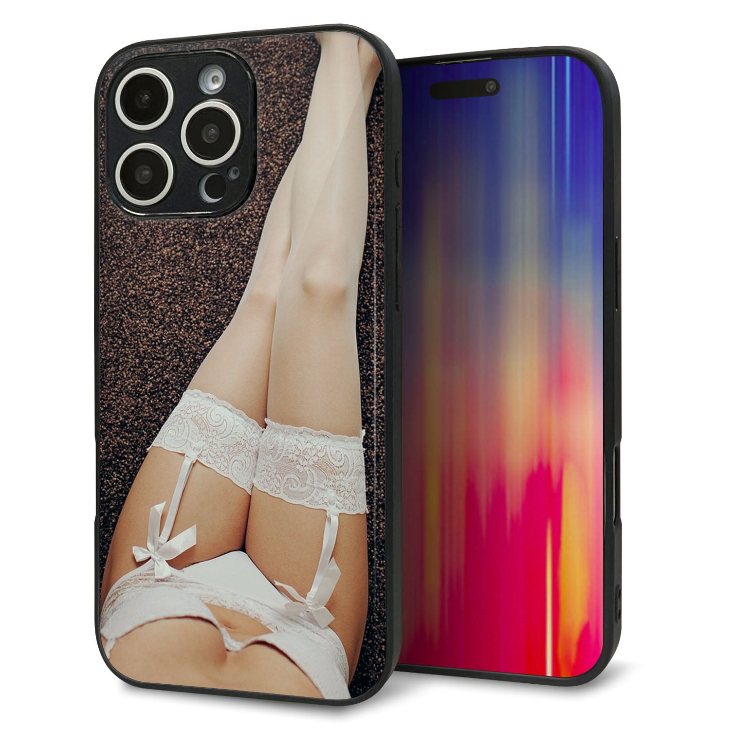 iPhone16 Pro Max 強化ガラス&TPUスマホケース ガラプリ【KM888 ストッキング】