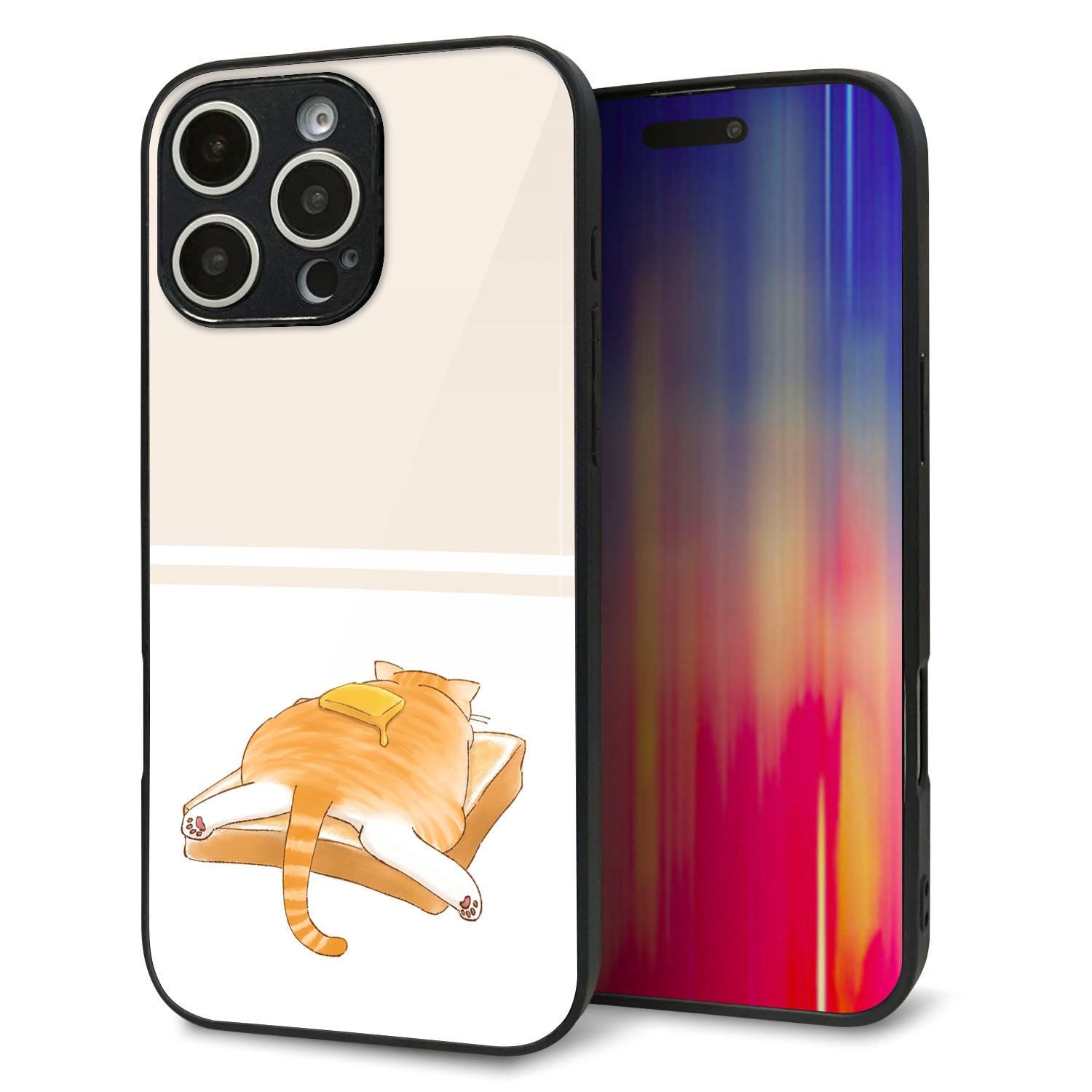 iPhone16 Pro Max 強化ガラス&TPUスマホケース ガラプリ【KM959 バター】