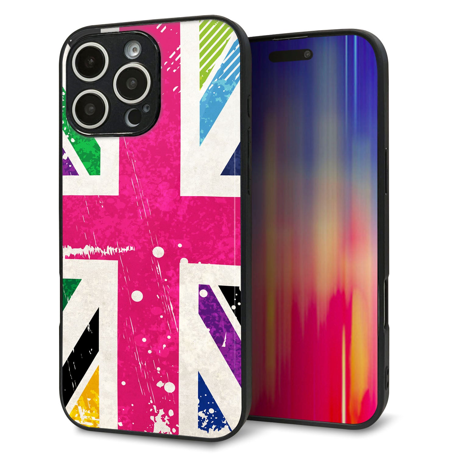 iPhone16 Pro Max 強化ガラス&TPUスマホケース ガラプリ【SC806 ユニオンジャック ピンクビンテージ】