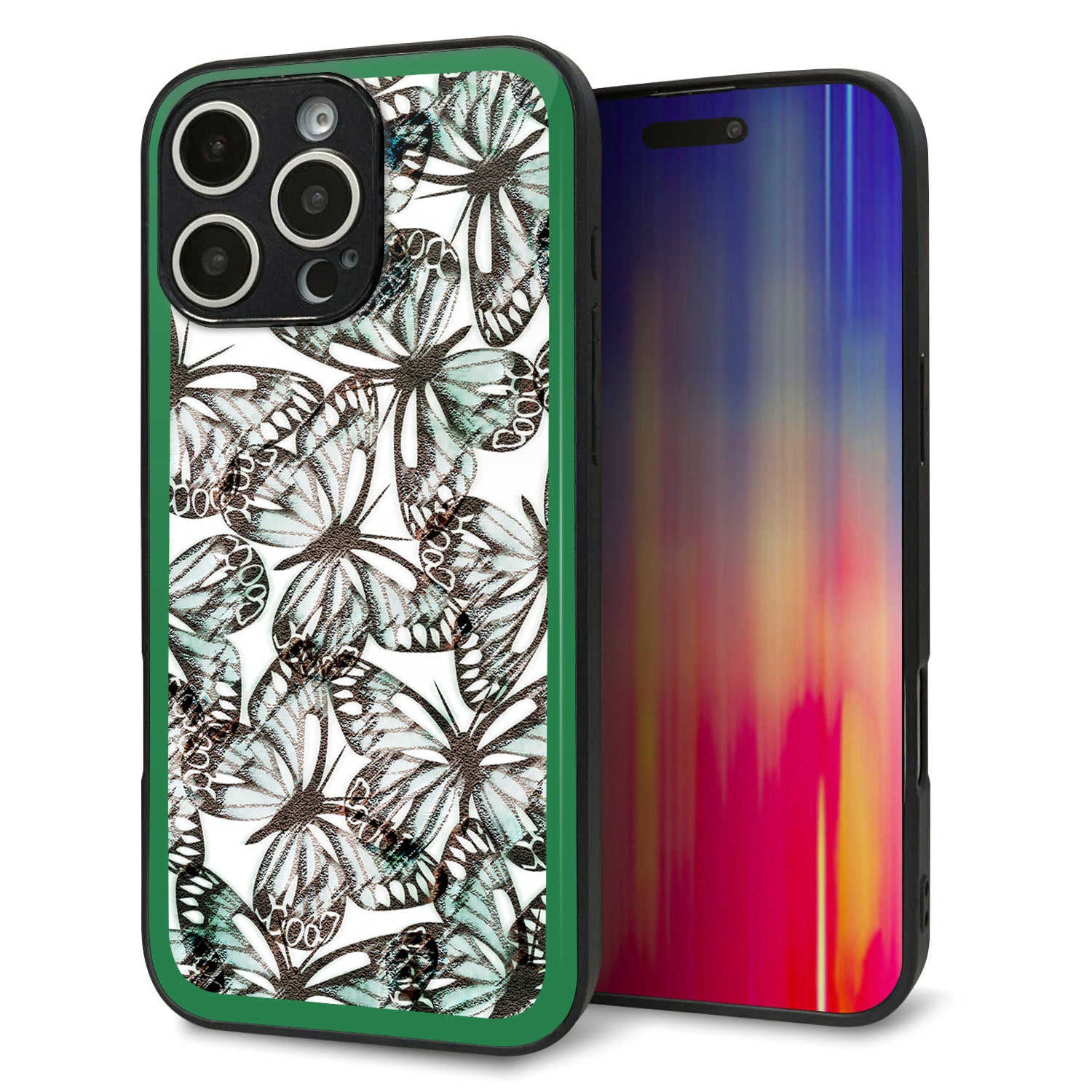 iPhone16 Pro Max 強化ガラス&TPUスマホケース ガラプリ【SC902 ガーデンバタフライ グリーン】