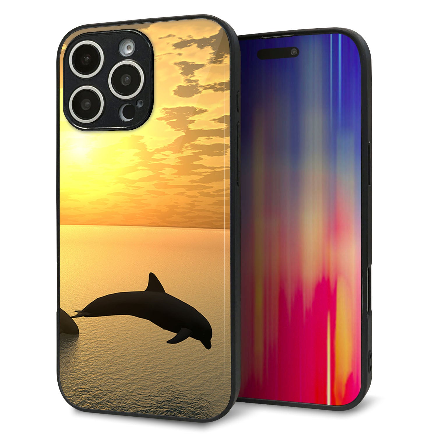 iPhone16 Pro Max 強化ガラス&TPUスマホケース ガラプリ【VA845 夕暮れのドルフィン】