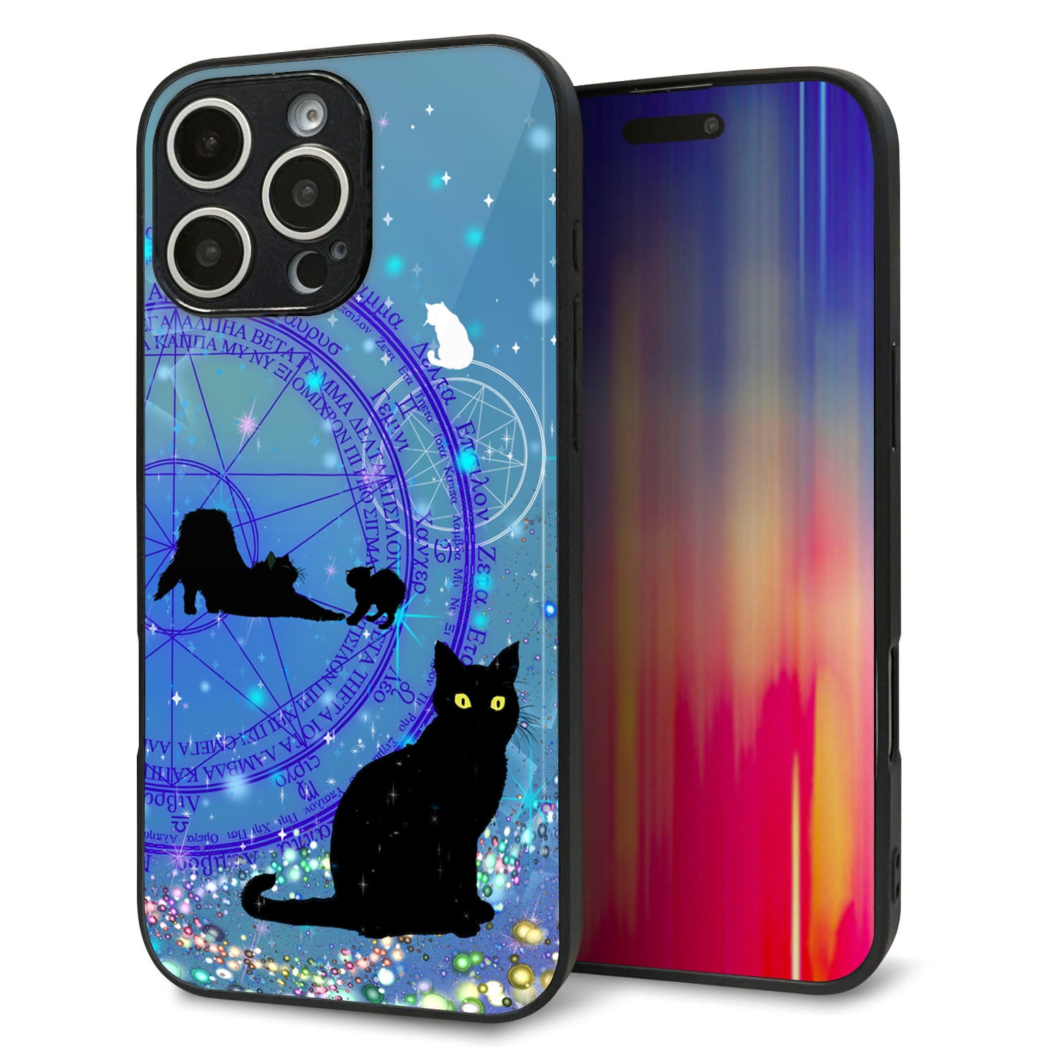 iPhone16 Pro Max 強化ガラス&TPUスマホケース ガラプリ【YJ327 魔法陣猫 キラキラ かわいい】