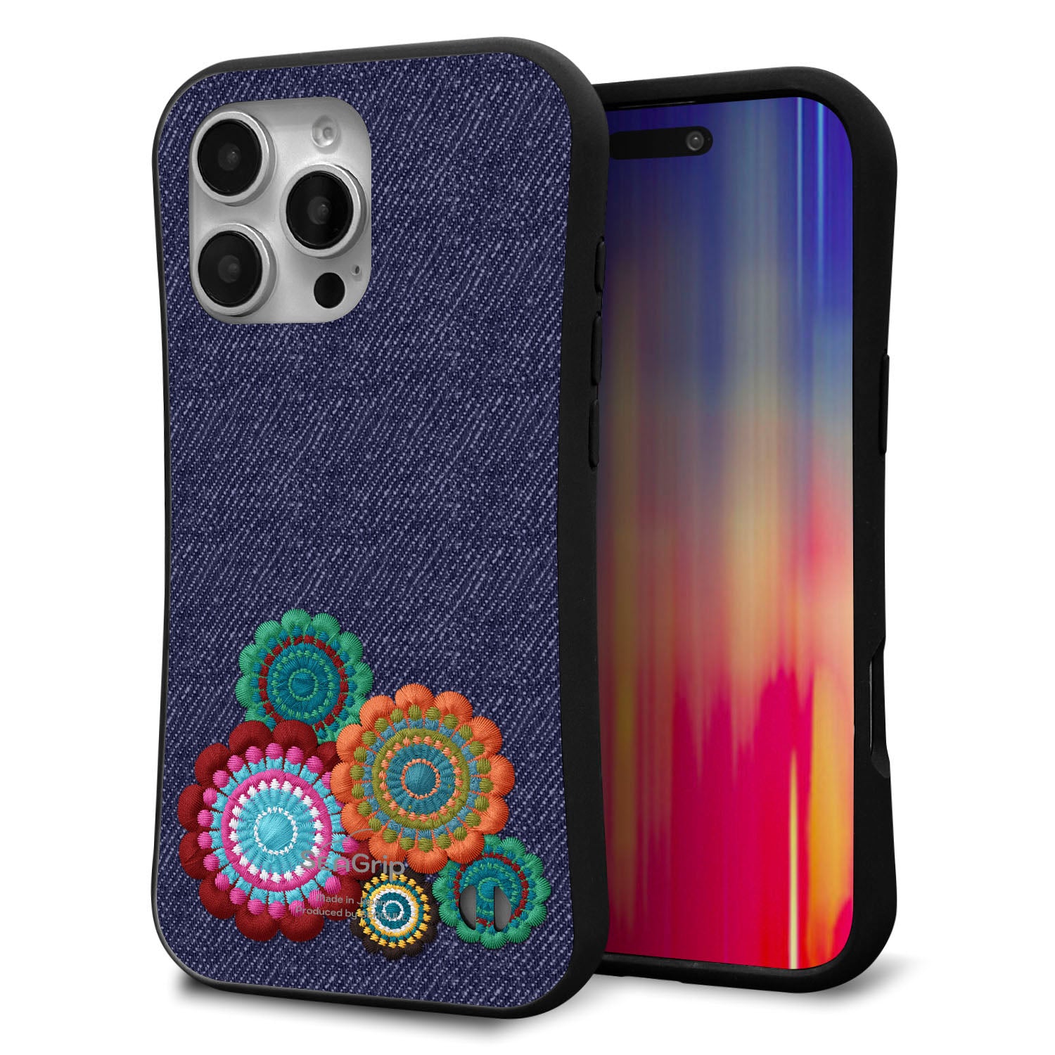iPhone16 Pro Max スマホケース 「SEA Grip」 グリップケース Sライン 【KM934 エスニックフラワー デニム】 UV印刷