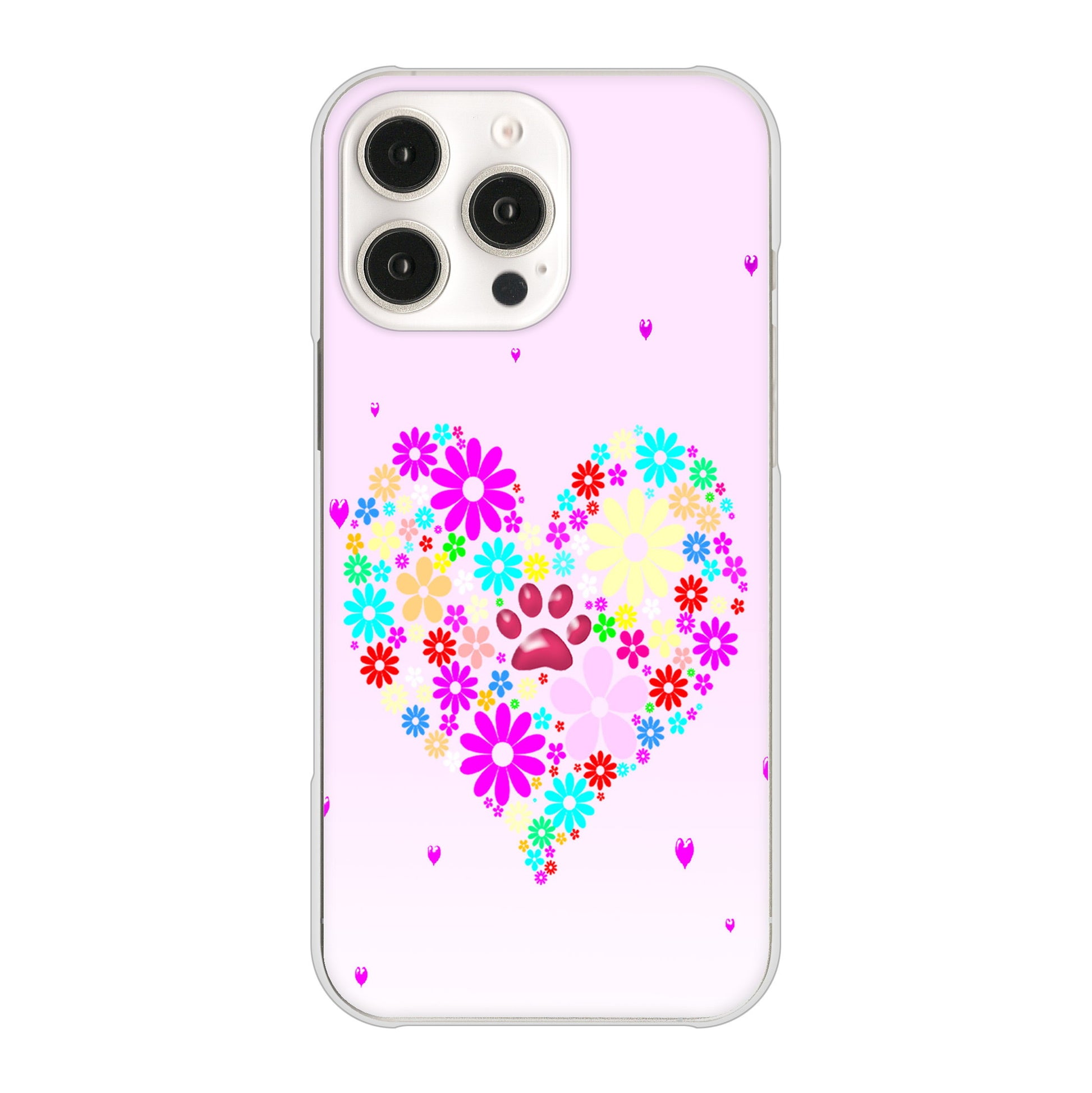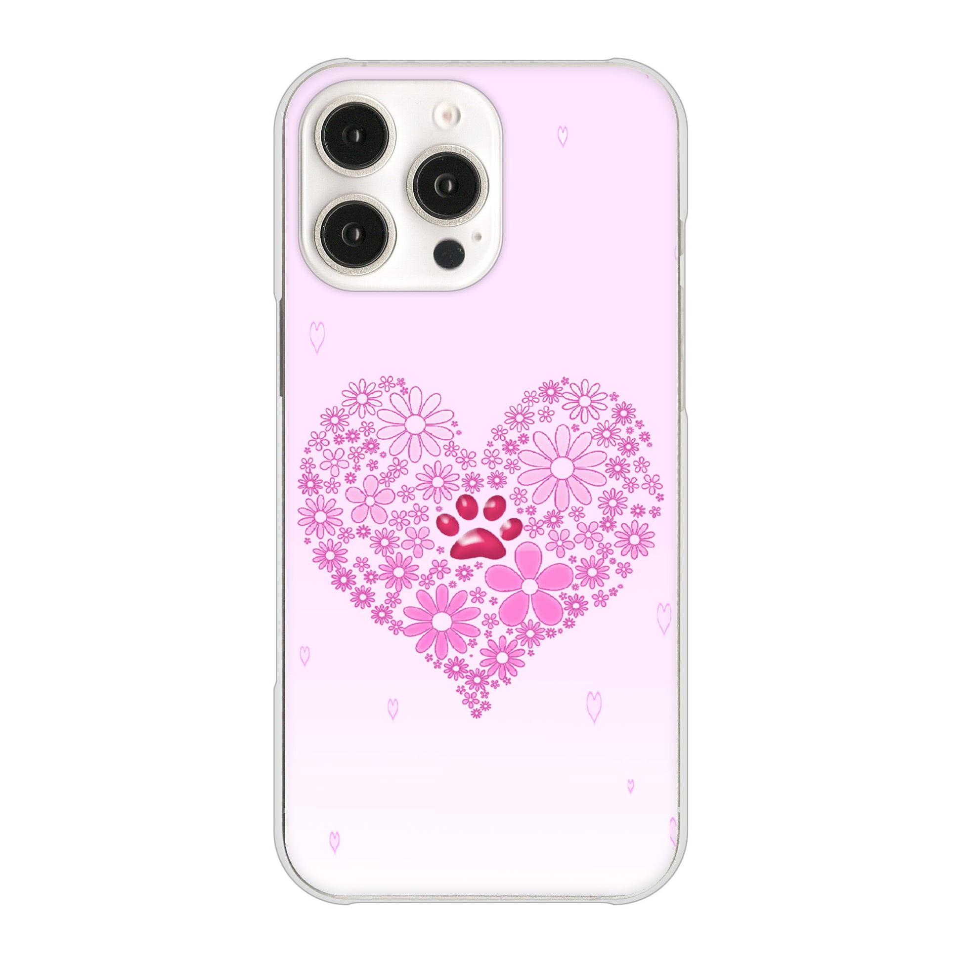 iPhone16 Pro Max 高画質仕上げ 背面印刷 ハードケースハートと肉球