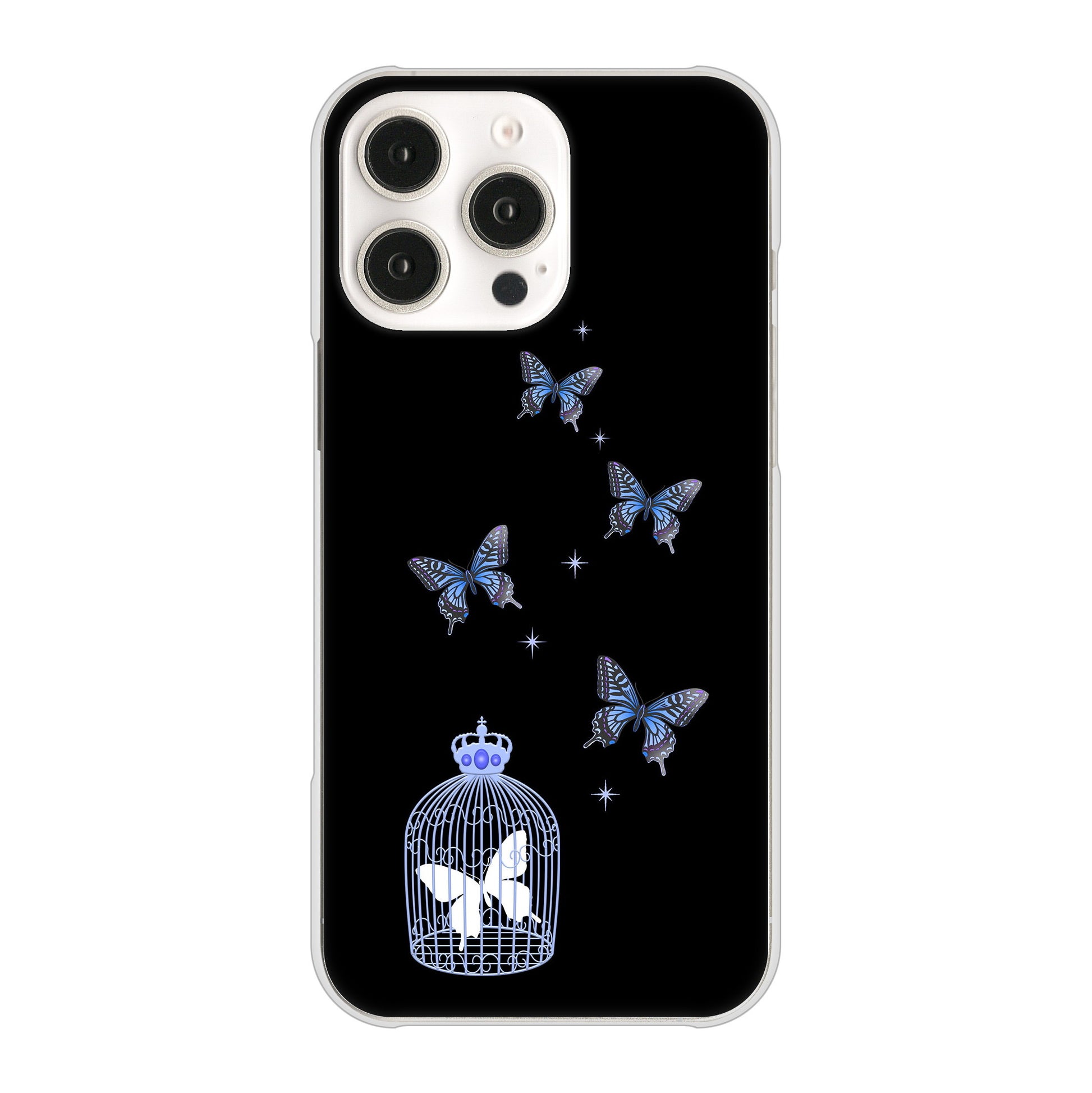 iPhone16 Pro Max 高画質仕上げ 背面印刷 ハードケースむかいあぐる 蝶の王冠鳥かご