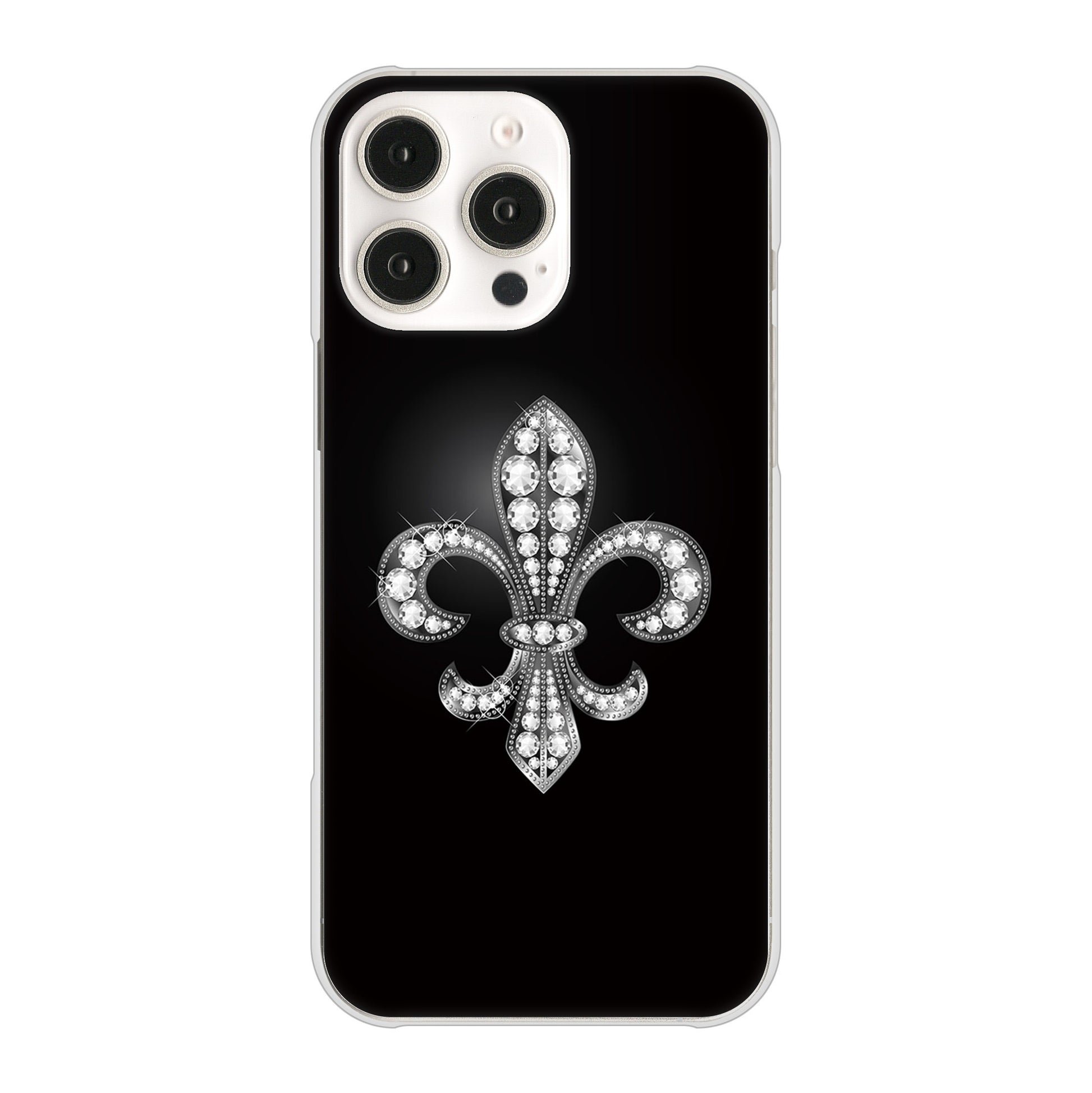 iPhone16 Pro Max 高画質仕上げ 背面印刷 ハードケース 【042 ラインストーン風の印刷ゴージャスユリ】
