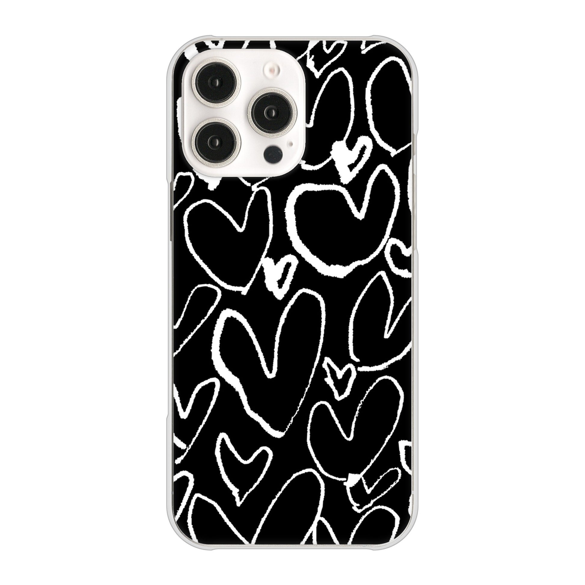 iPhone16 Pro Max 高画質仕上げ 背面印刷 ハードケース 【1124 ハート BK&WH】