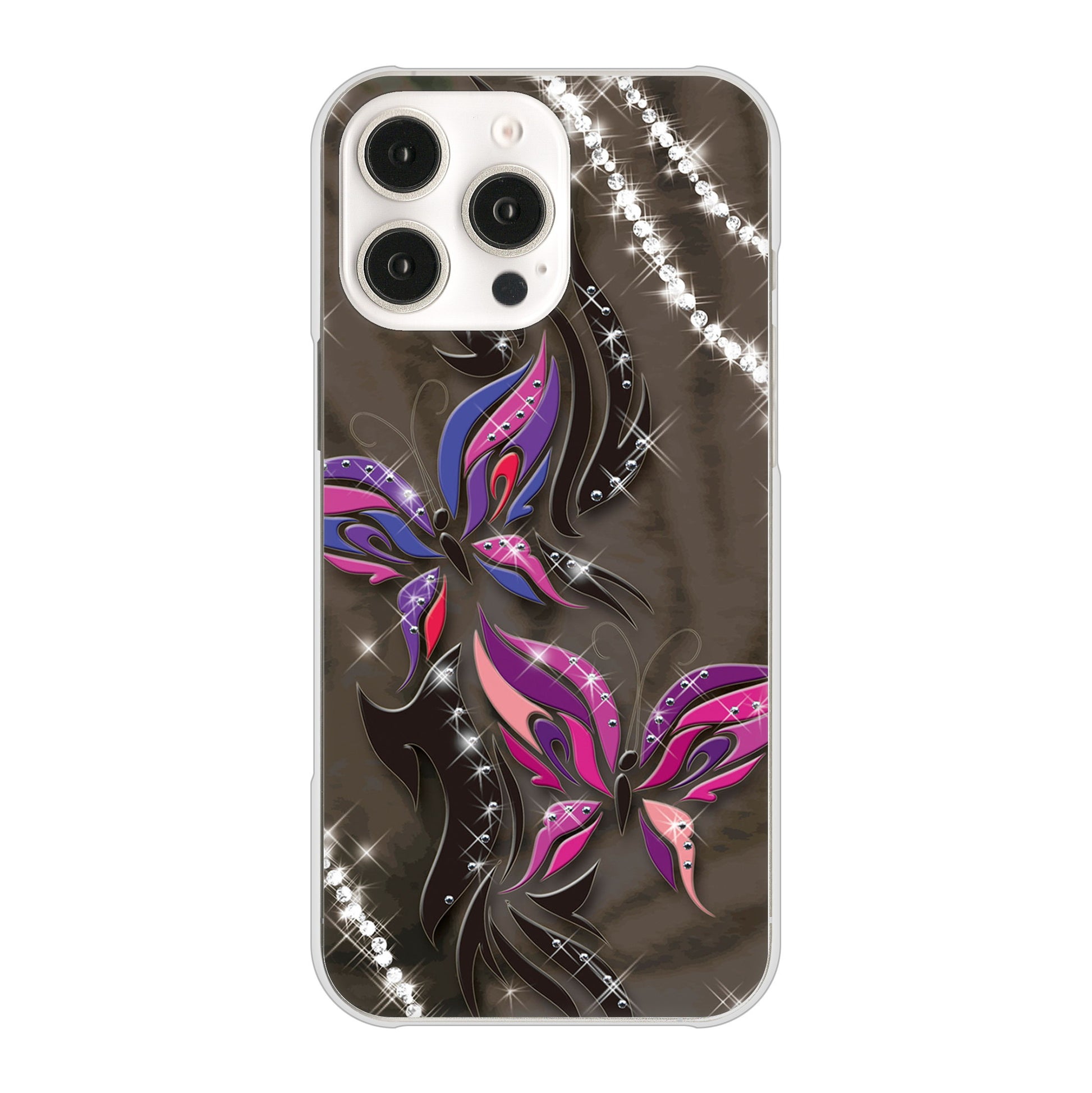 iPhone16 Pro Max 高画質仕上げ 背面印刷 ハードケース 【1164 キラめくストーンと蝶】