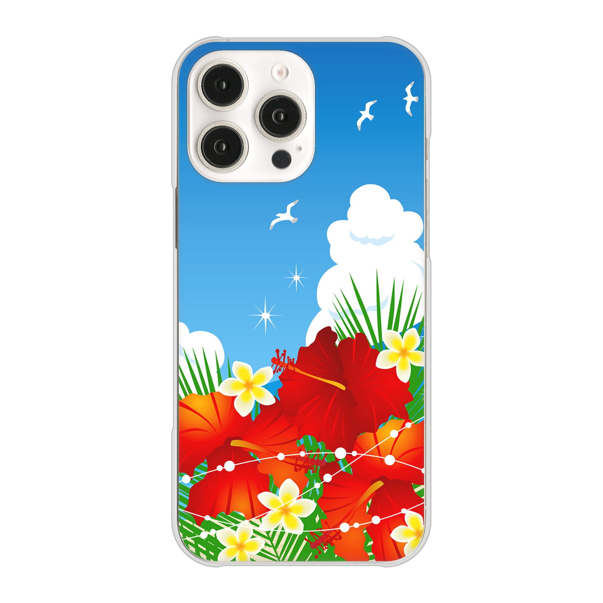 iPhone16 Pro Max 高画質仕上げ 背面印刷 ハードケース 【VA821 ハイビスカスと青空】