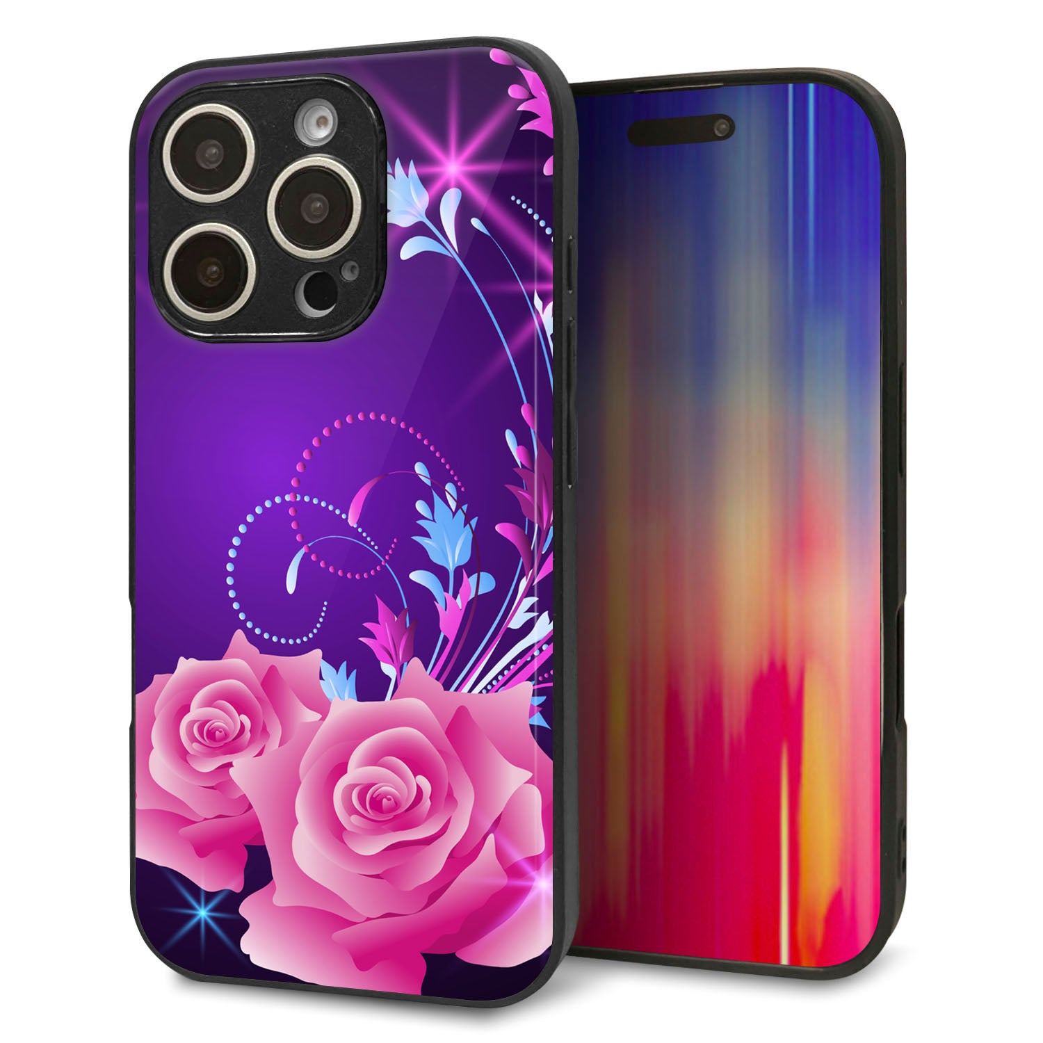iPhone16 Pro 強化ガラス&TPUスマホケース ガラプリ【1177 紫色の夜】