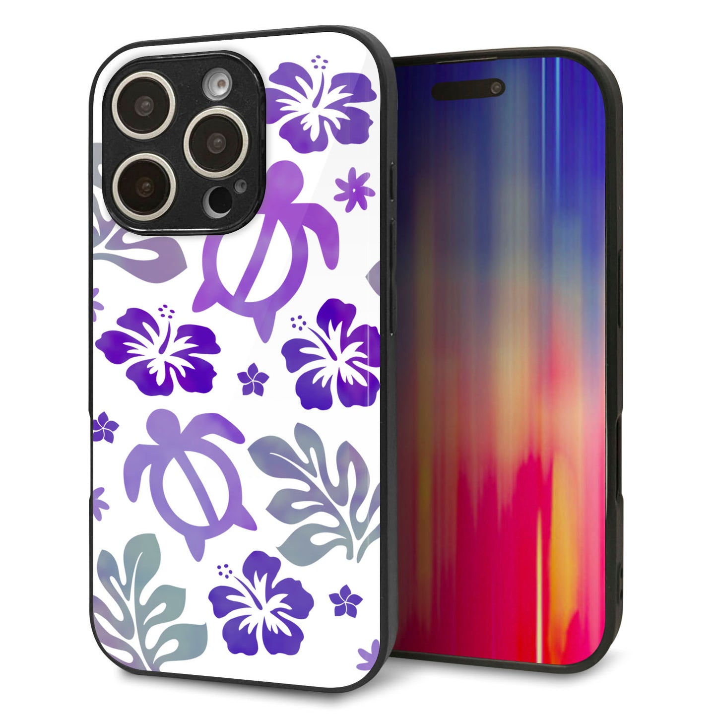 iPhone16 Pro 強化ガラス&TPUスマホケース ガラプリ【SC878 ハワイアンアロハホヌ(パープル)】