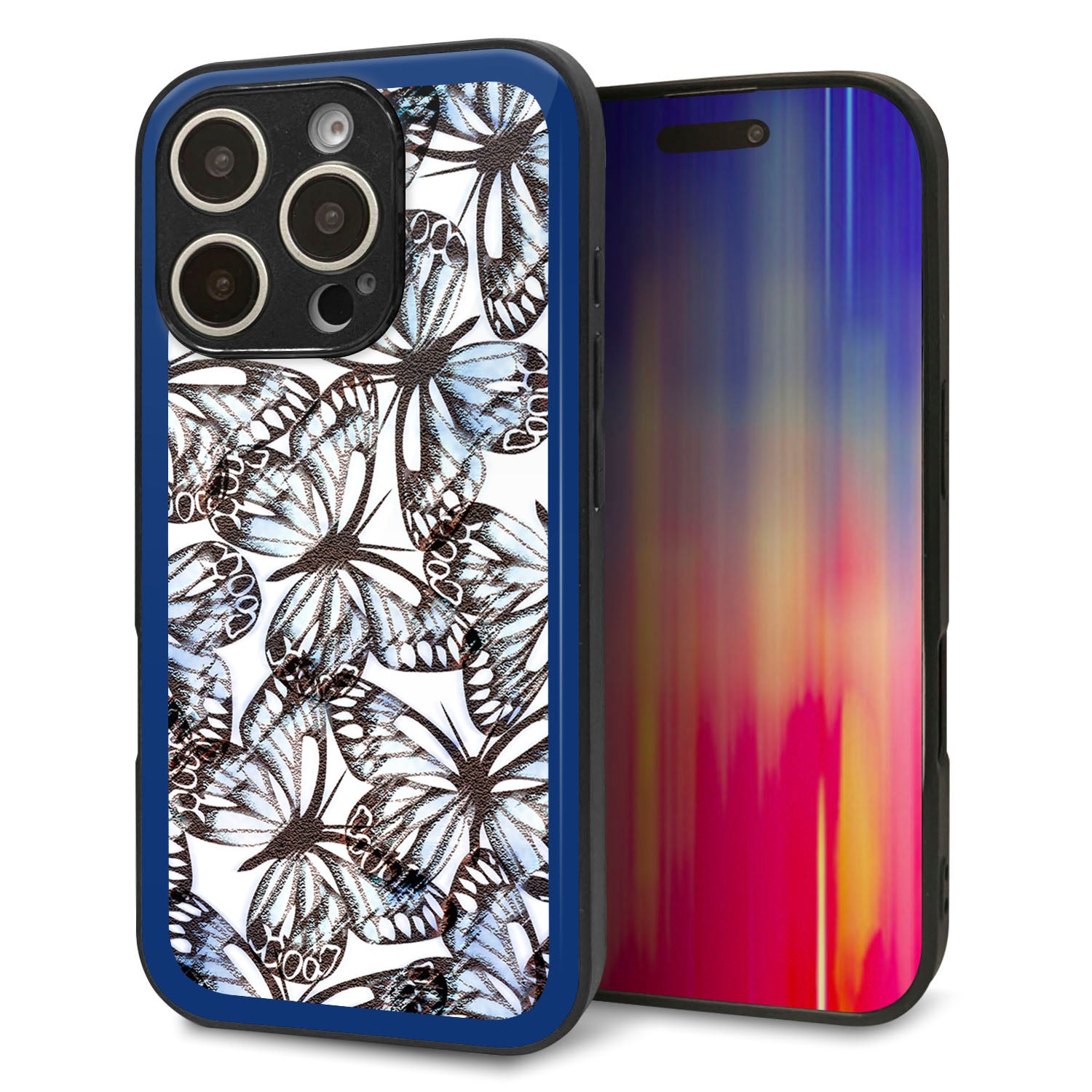 iPhone16 Pro 強化ガラス&TPUスマホケース ガラプリ【SC906 ガーデンバタフライ ブルー】