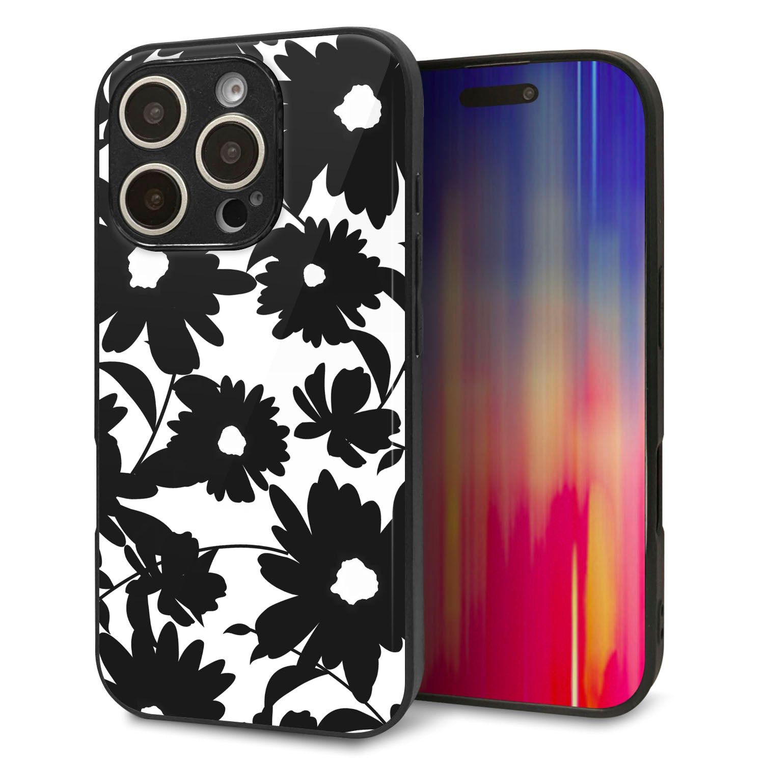 iPhone16 Pro 強化ガラス&TPUスマホケース ガラプリ【SC916 花柄モノトーン 05】
