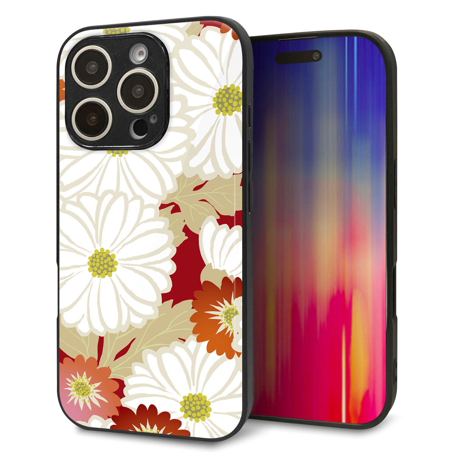 iPhone16 Pro 強化ガラス&TPUスマホケース ガラプリ【YJ322 和柄 菊】