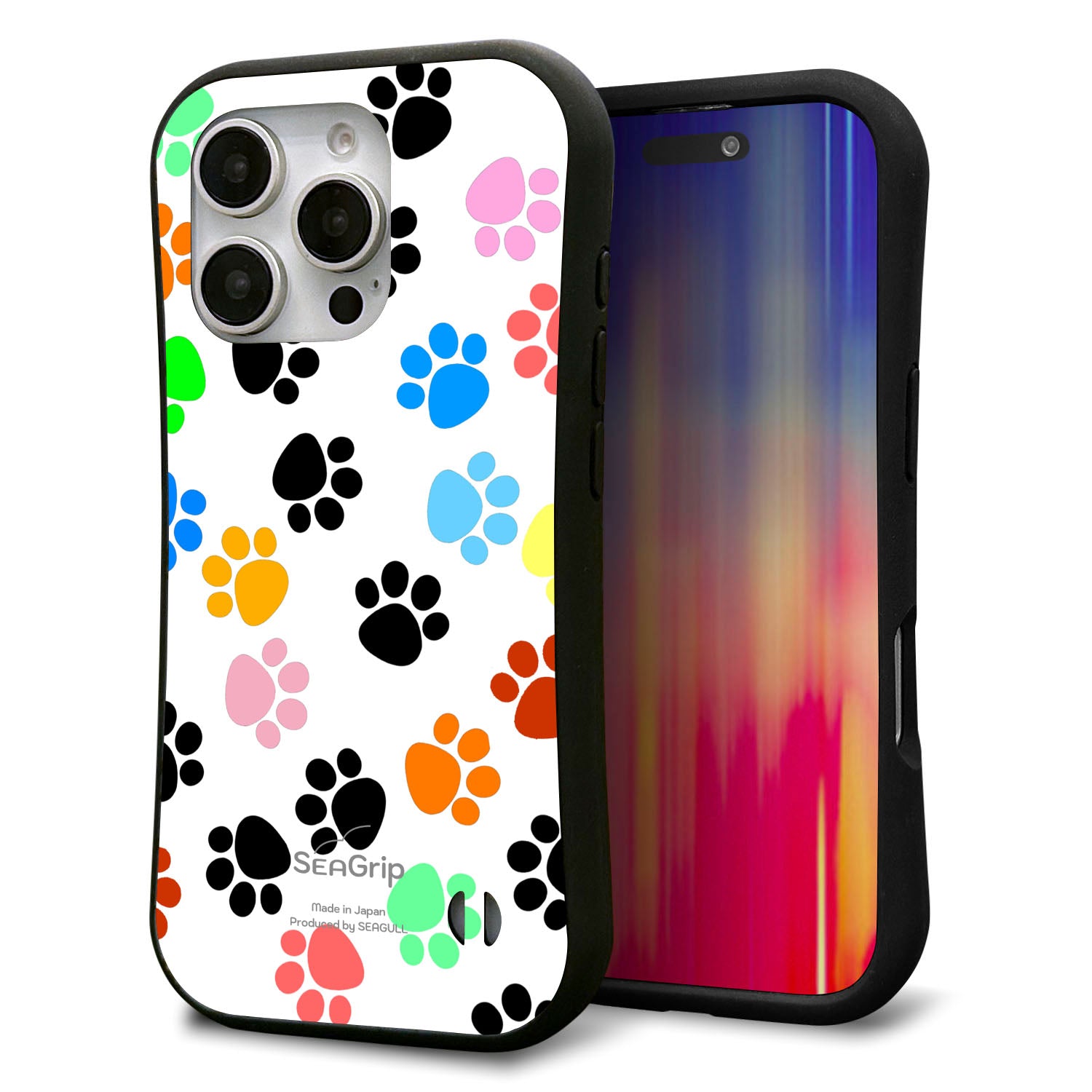 iPhone16 Pro スマホケース 「SEA Grip」 グリップケース Sライン 【1108 あしあとカラフル】 UV印刷