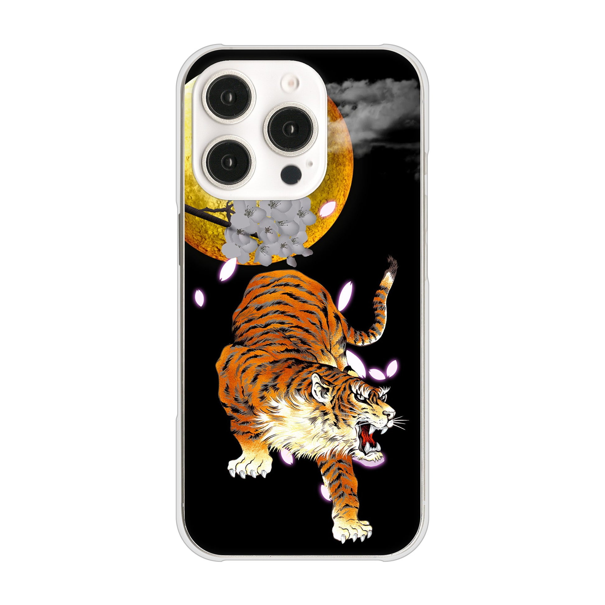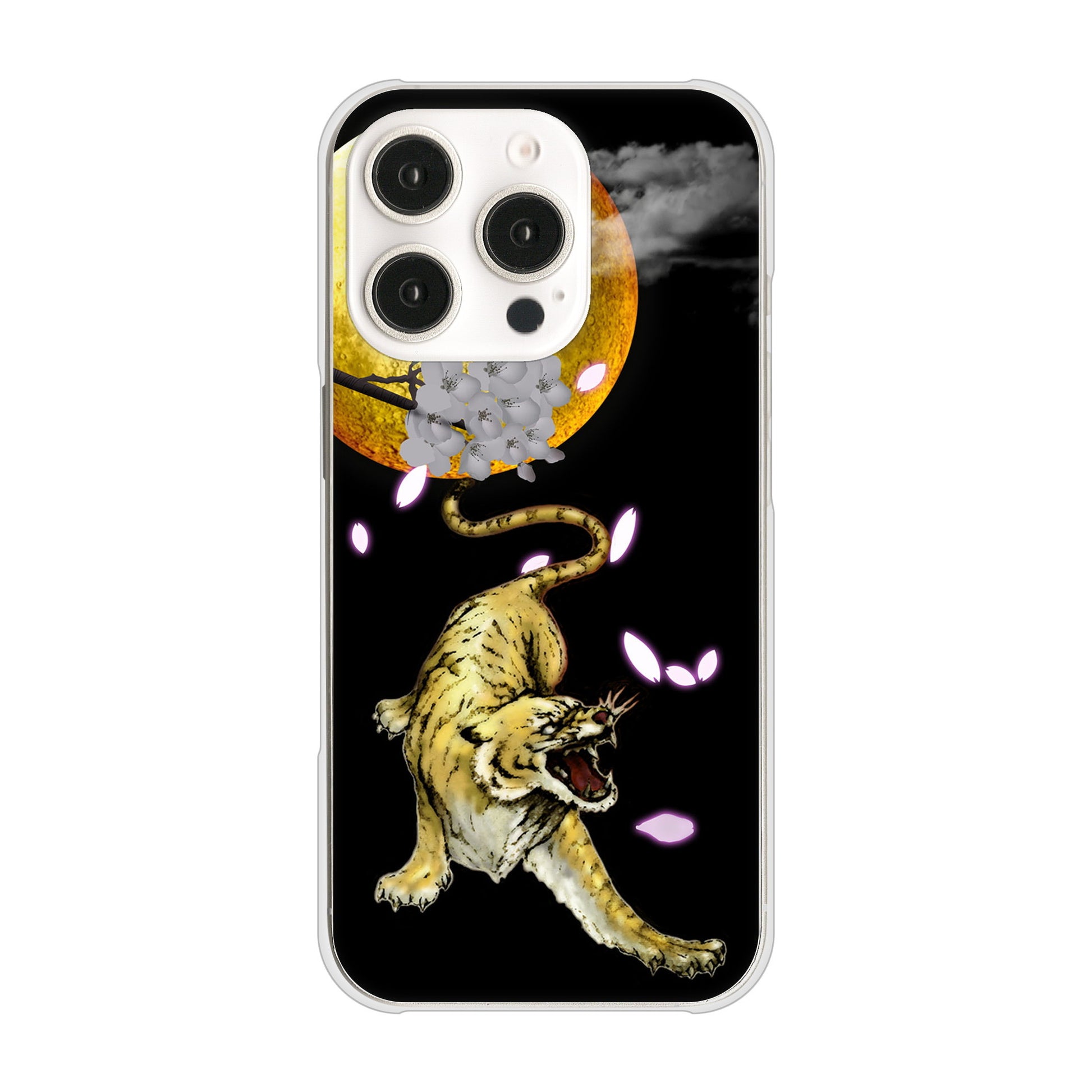 iPhone16 Pro 高画質仕上げ 背面印刷 ハードケース月とタイガー