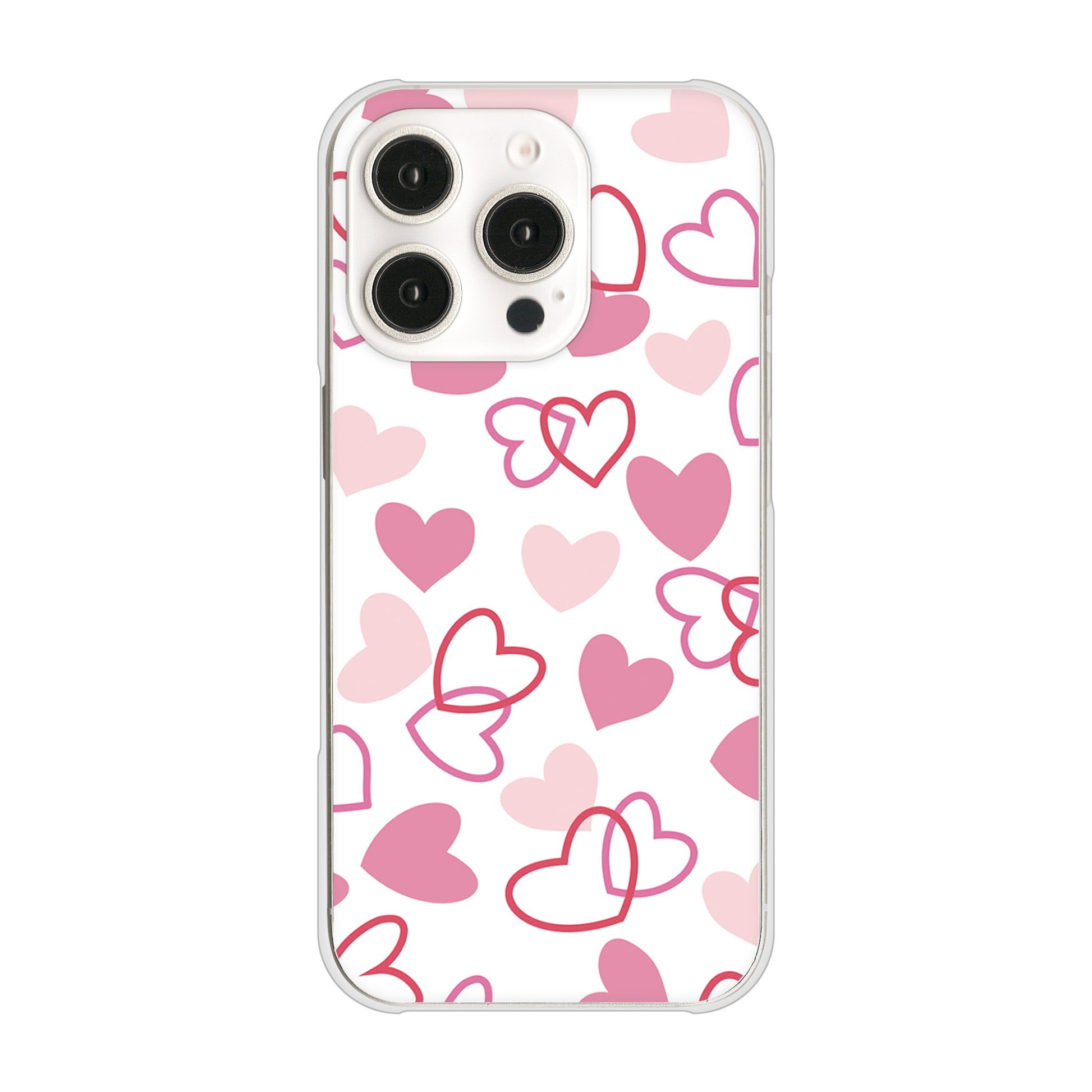 iPhone16 Pro 高画質仕上げ 背面印刷 ハードケースハートがいっぱい
