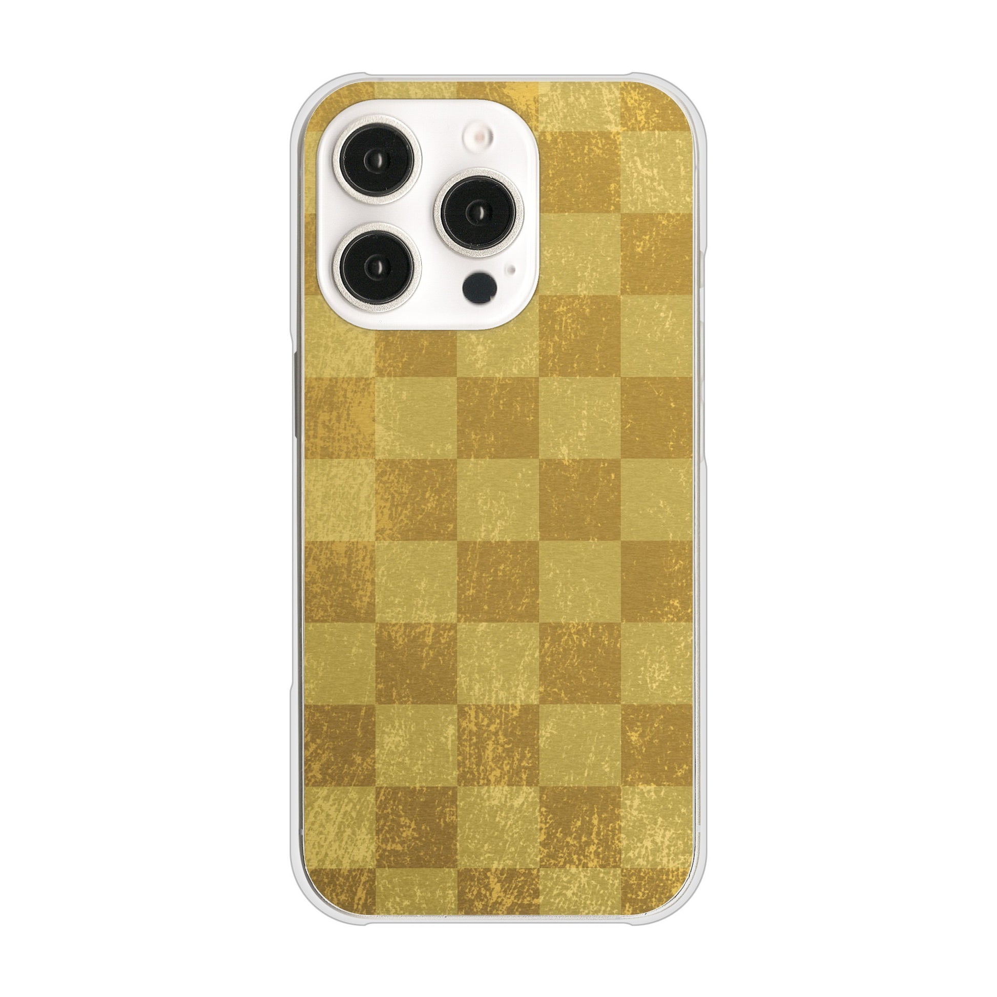 iPhone16 Pro 高画質仕上げ 背面印刷 ハードケース 【619 市松模様-金(骨董風に傷んだイメージ)】