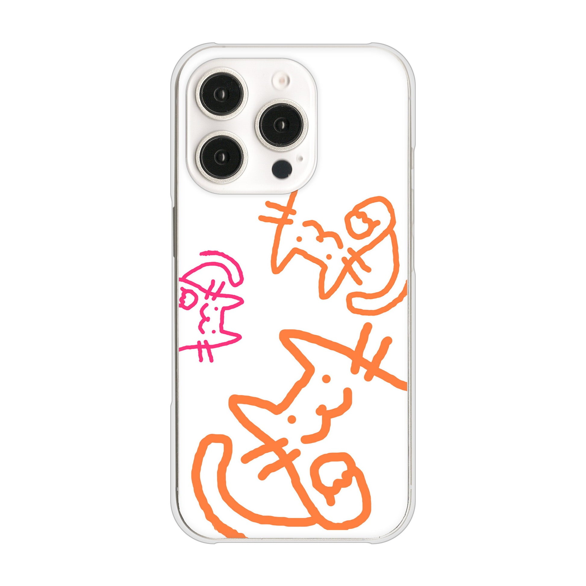 iPhone16 Pro 高画質仕上げ 背面印刷 ハードケース 【1098 手まねきする3匹のネコ】