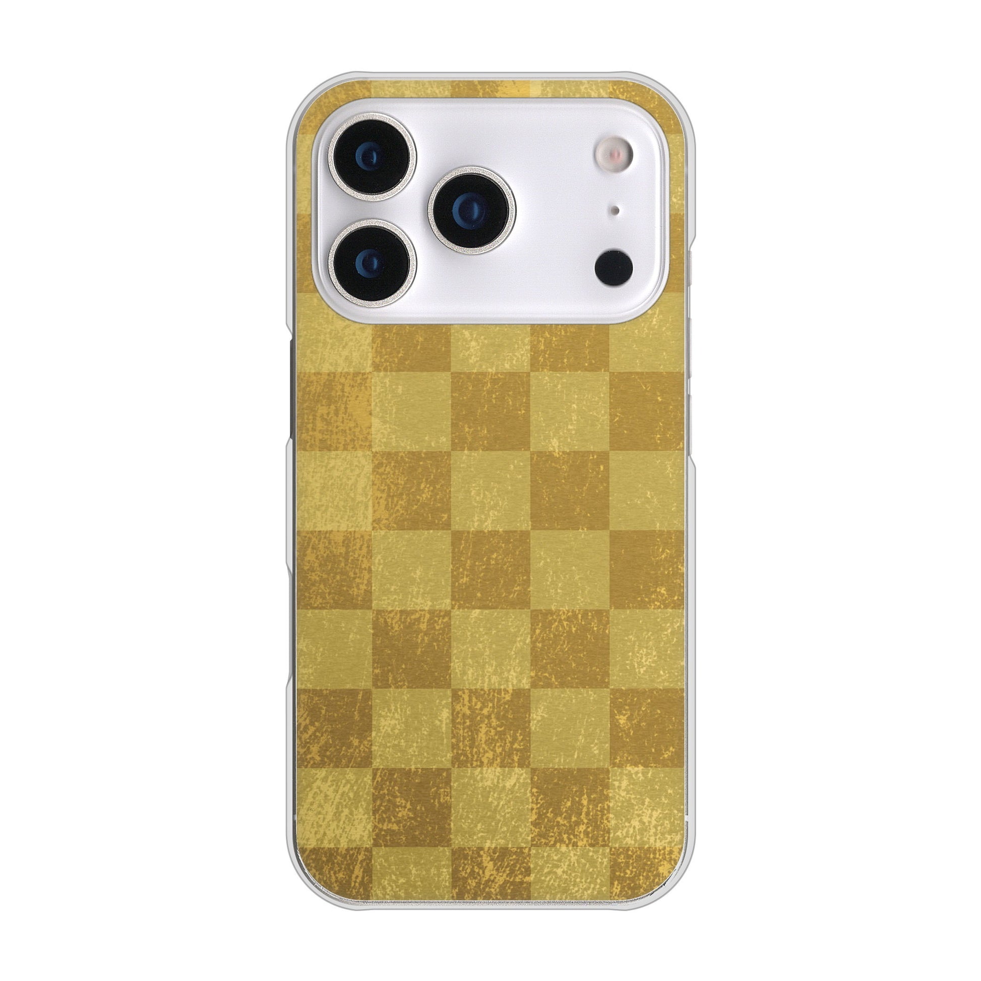 iPhone17 Pro 高画質仕上げ 背面印刷 ハードケース 【619 市松模様-金(骨董風に傷んだイメージ)】