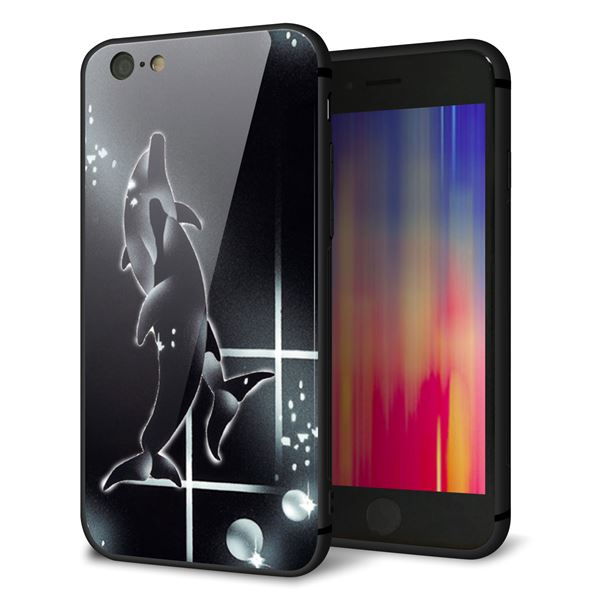 iPhone6 強化ガラス&TPUスマホケース ガラプリ【158 ブラックドルフィン】