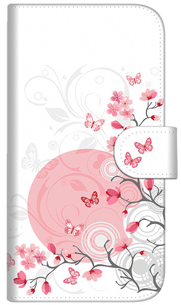iPhone6 PLUS 高画質仕上げ プリント手帳型ケース(通常型)【030 花と蝶(うす桃色)】