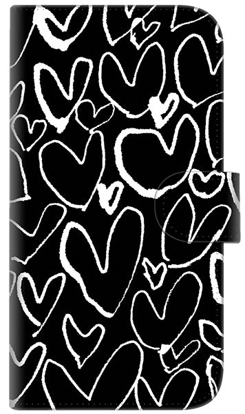 iPhone6 PLUS 高画質仕上げ プリント手帳型ケース(通常型)【1124 ハート BK&WH】