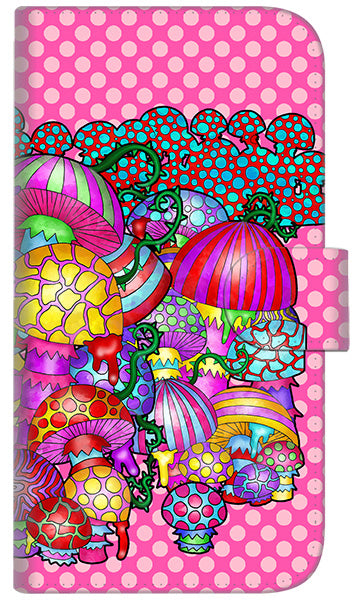 iPhone6 PLUS 高画質仕上げ プリント手帳型ケース(通常型)【AG806 きのこ(ピンク)】