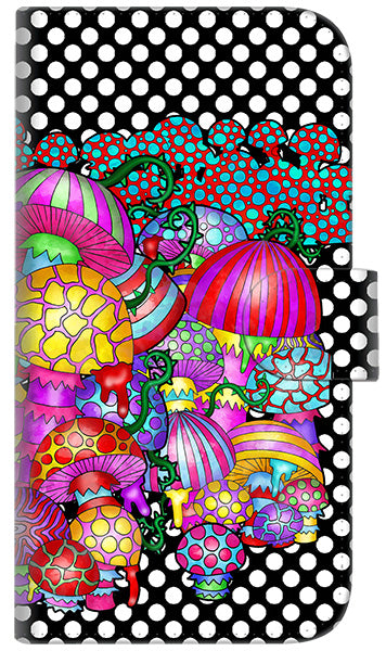 iPhone6 PLUS 高画質仕上げ プリント手帳型ケース(通常型)【AG807 きのこ(黒)】