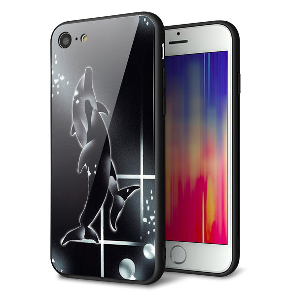 iPhone7 強化ガラス&TPUスマホケース ガラプリ【158 ブラックドルフィン】