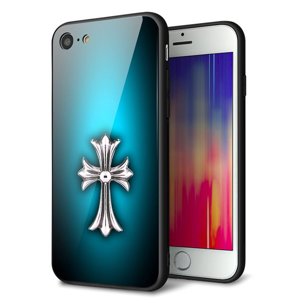 iPhone7 強化ガラス&TPUスマホケース ガラプリ【334 クロスブルー】