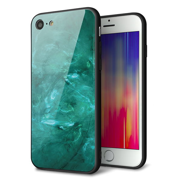 iPhone7 強化ガラス&TPUスマホケース ガラプリ【KM869 大理石GR】