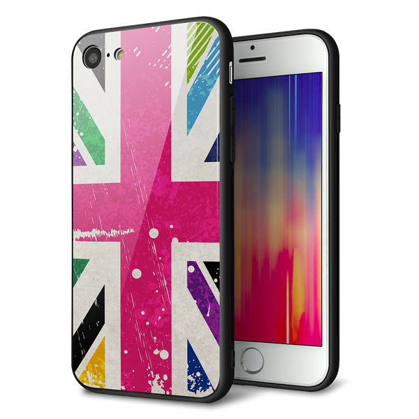 iPhone7 強化ガラス&TPUスマホケース ガラプリ【SC806 ユニオンジャック ピンクビンテージ】