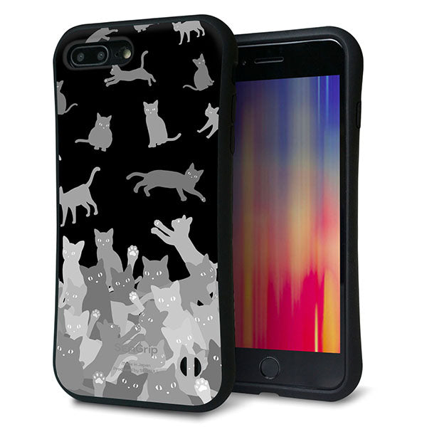 iPhone7 PLUS スマホケース 「SEA Grip」 グリップケース Sライン 【AG887 ネコ積もり 黒】 UV印刷