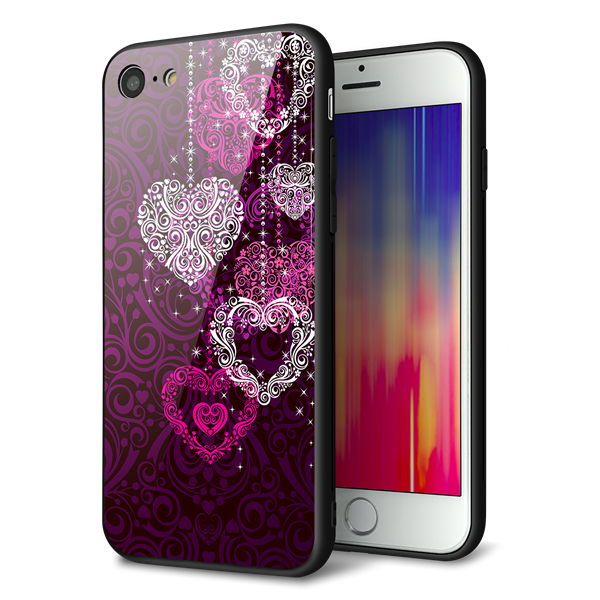 iPhone8 強化ガラス&TPUスマホケース ガラプリ【468 ハートのシャンデリア】