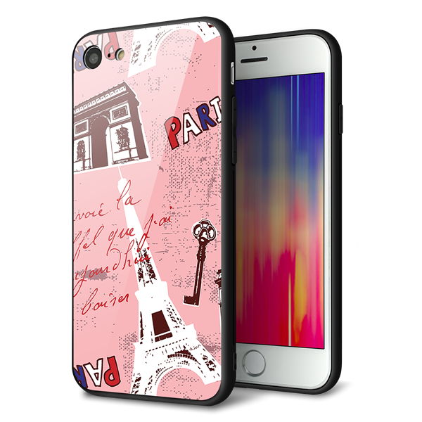 iPhone8 強化ガラス&TPUスマホケース ガラプリ【EK813 ビューティフルパリレッド】