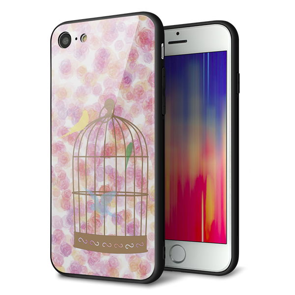 iPhone8 強化ガラス&TPUスマホケース ガラプリ【KM882 鳥かご】