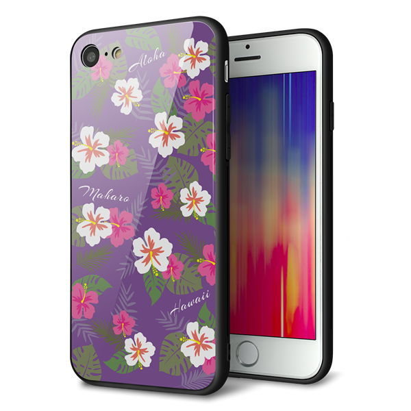 iPhone8 強化ガラス&TPUスマホケース ガラプリ【SC886 ハワイアンアロハレトロ(パープル)】
