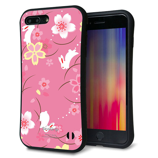iPhone8 PLUS スマホケース 「SEA Grip」 グリップケース Sライン 【149 桜と白うさぎ】 UV印刷